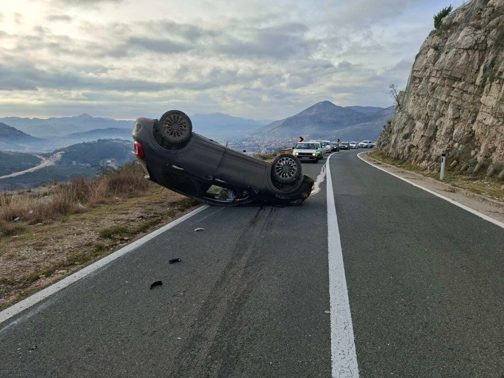 Na magistralnoj cesti između Trebinje i Bileća dogodila se prometna nezgoda u kojoj je došlo do prevrtanja osobnog vozila.