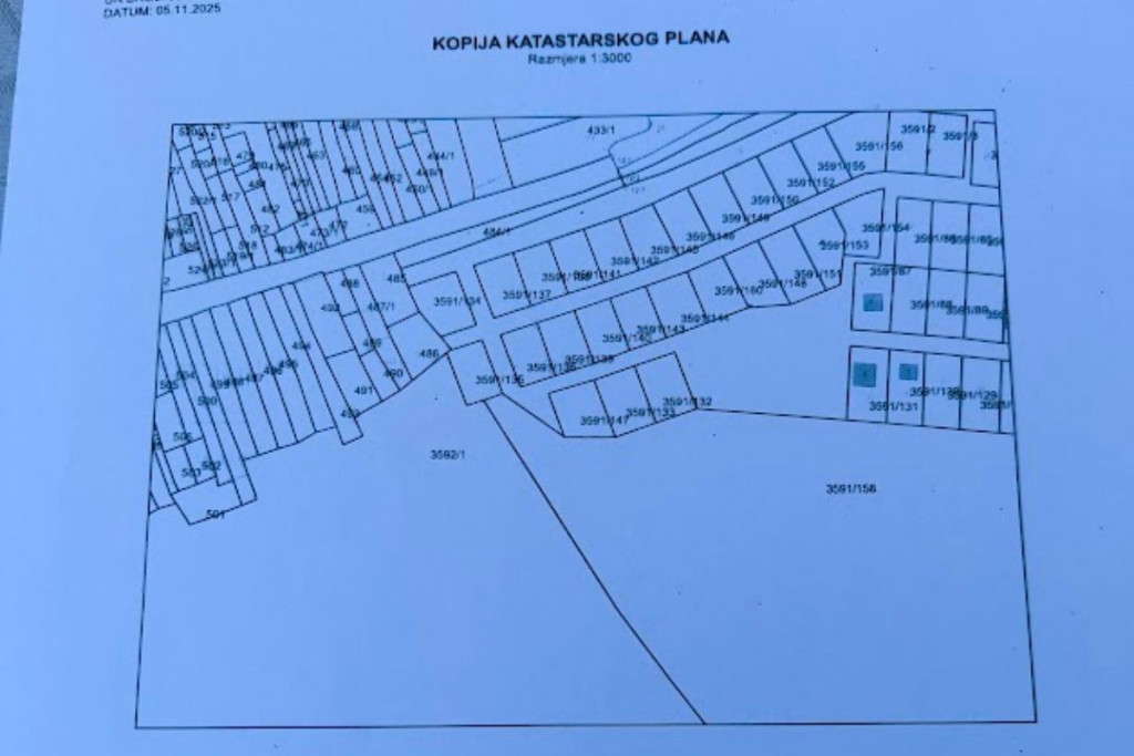 Iz nacrta naselja Modrič (mjerilo 1:2000), koji je bio sastavni dio odluke, jasno je vidljivo da čestice numerirane od 3591/132 do 3591/147 čine jedinstveni niz parcela omeđenih javnom prometnicom i zelenim pojasom. Broj 3591/160 u tom nacrtu ne postoji.
