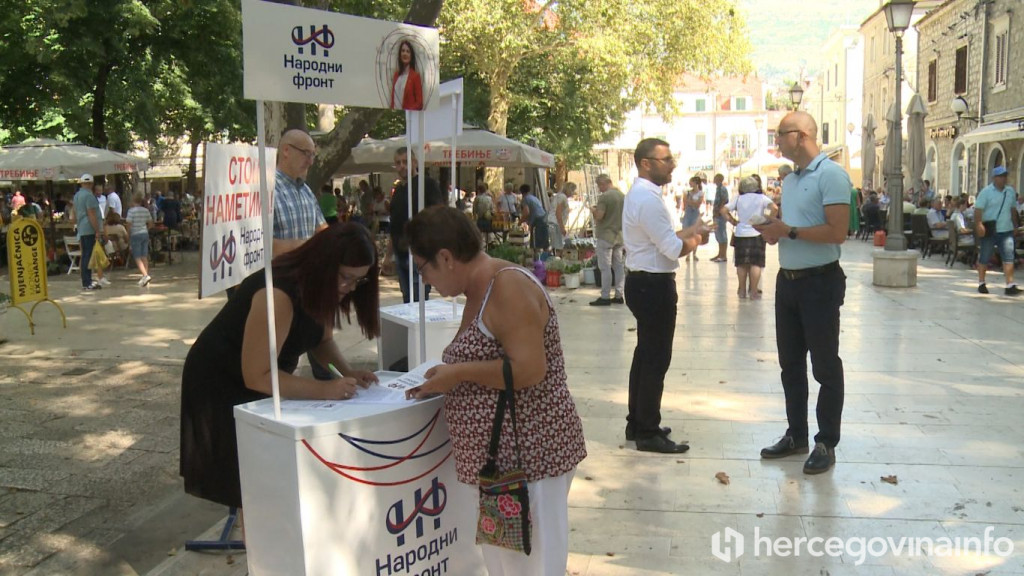 Prije mjesec dana, predstavnici oporbe iz Narodnog Fronta u Trebinju pokrenuli su značajnu inicijativu pod nazivom "Stop nametima". Rezultat toga je i današnja peticija građana, kako bi podržali ovu akciju i dali svoj potpis na peticiju koja će biti upućena gradonačelniku Trebinja, Mirku Ćuriću. Cilj ove peticije je postizanje smanjenja cijena vode, kanalizacije, poreza na nepokretnosti, komunalnih naknada i parking usluga u gradu Trebinju.