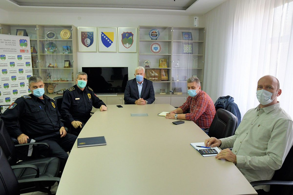 Sastanku su pored načelnika Općine prisustvovali načelnik Policijske uprave Hadžići Nusad Ajanović, zapovjednik Policijske postaje Hadžići Asim Merdanović, predstavnik IOM BiH Enes Kaljanac te Muris Selimović predstavnik Službe za poslove sa strancima BiH.