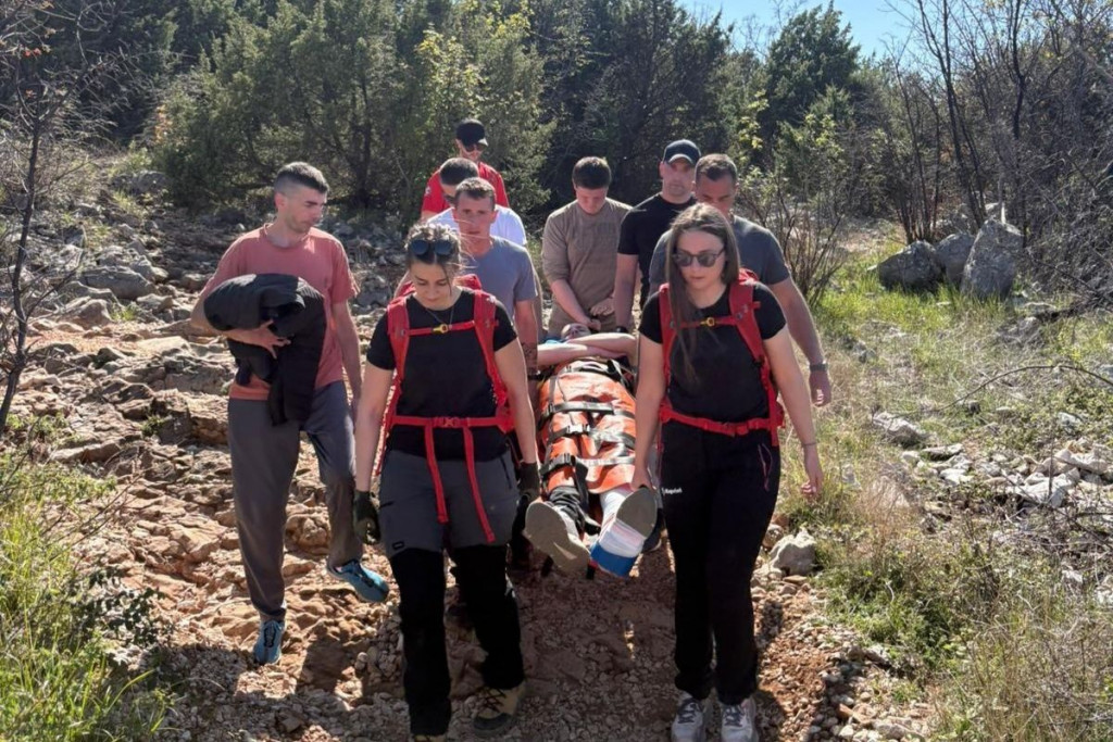 Na terenu je obavljen pregled i imobilizacija ozlijeđene noge, nakon čega je unesrećeni nosilima transportiran do podnožja brda.