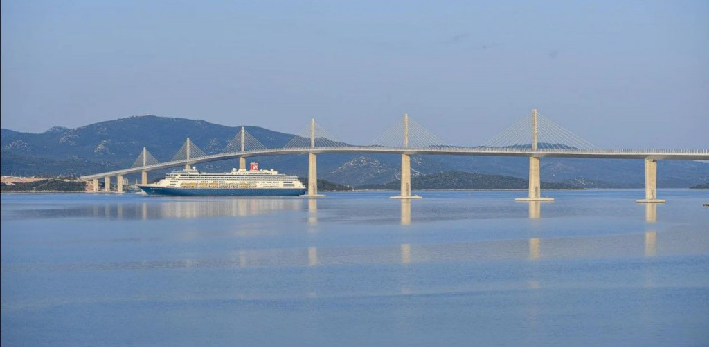 Unatoč snažnom protivljenju lokalne vlasti oko ulaska velikih brodova u Neum kruzer "Bolette" pod zapovjedništvom dubrovačkog kapetana Joze Glavića s nešto više od tisuću putnika prošao je u 6 sati i osamanest minuta ispod Pelješkog mosta na svom putu prema neumskom akvatoriju.
