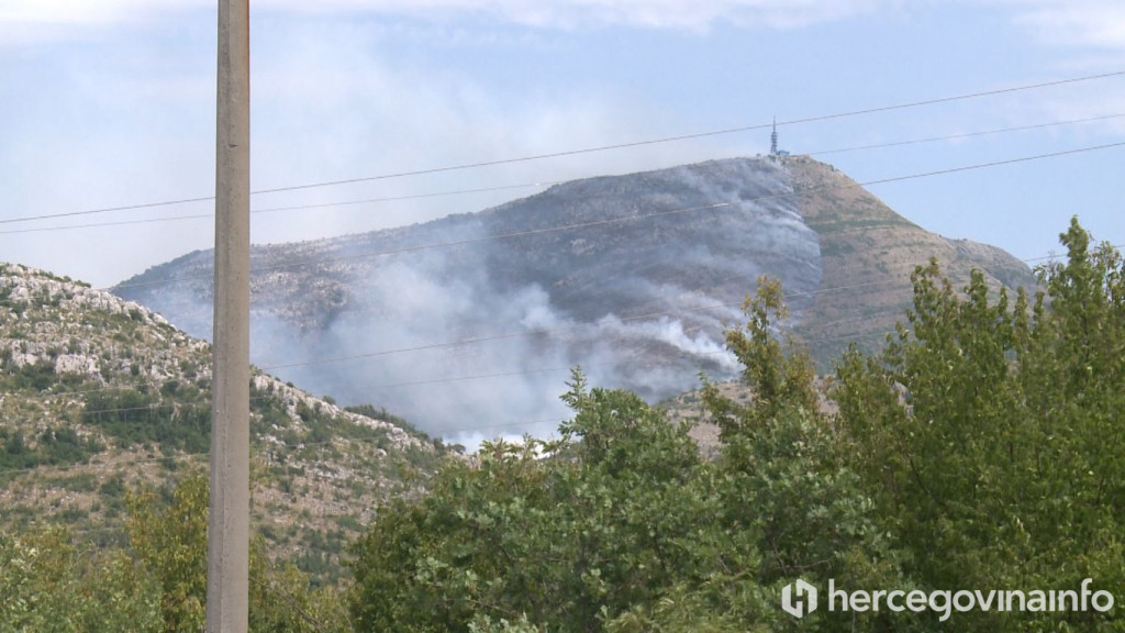 Jučer oko 15 sati izbio je požar na brdima iznad Trebinja, u području Trebinjskih brda, ispod planine Leotar.