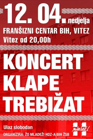 Početak koncerta je zakazan za 20,00 u dvorani Franšiznog centra BiH u Vitez i to u organizaciji ŽO Mladeži HDZ-a BiH ŽSB.