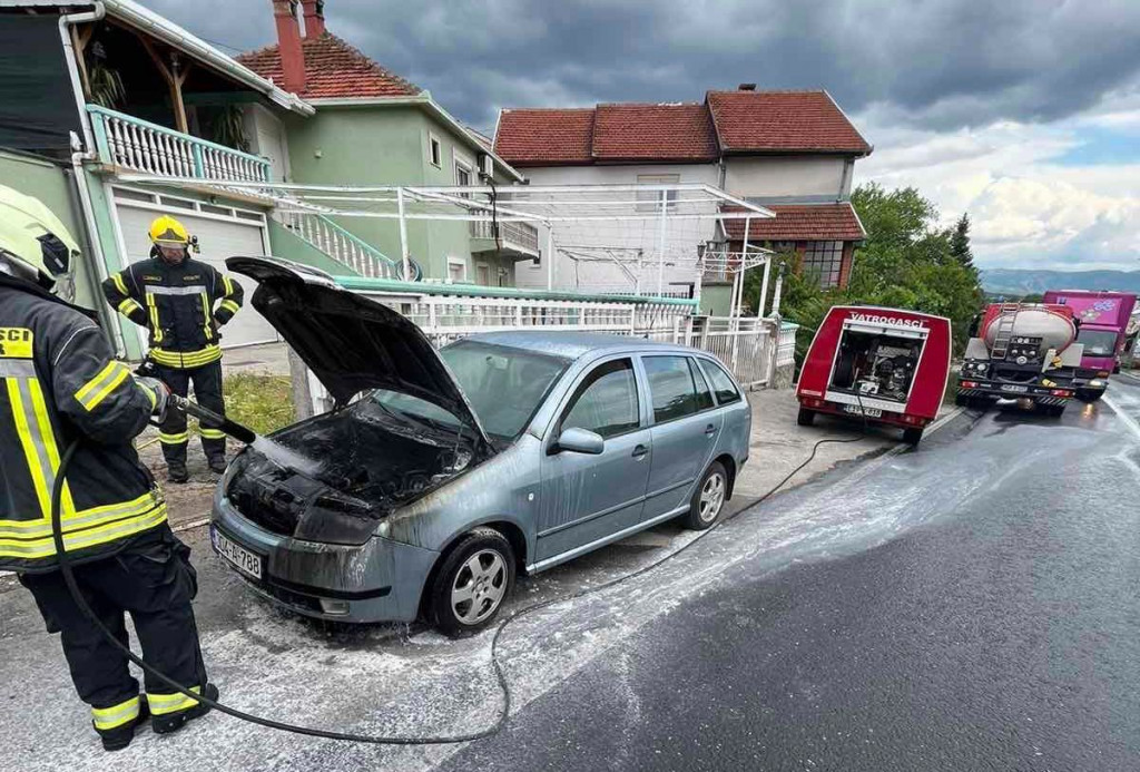 Danas oko 15 sati u naselju Šehovina, pored magistralne ceste M-17 došlo je do požara na osobnom automobilu Škoda.