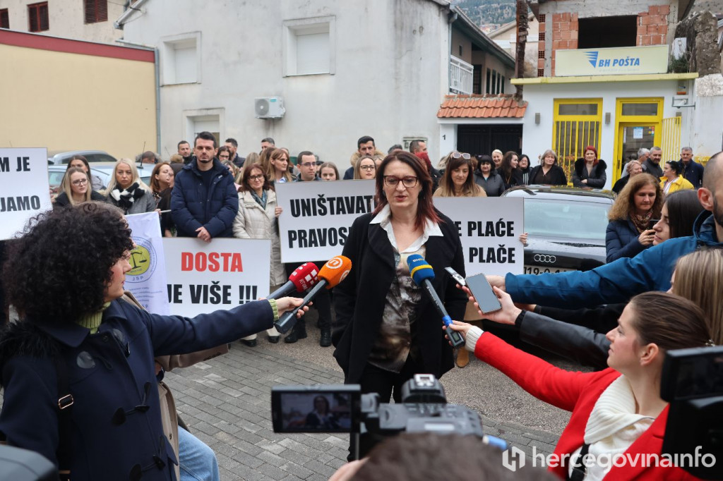 ''Od ove plaće nam se plače'', ''Plata nam je jad, obustavljamo rad'', ''Dosta je više'', samo su neki od transparenata koje su nosili članovi sindikata državnih službenika i namještenika pravosuđa Hercegovačko-neretvanske županije.