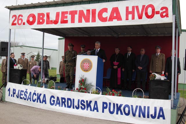 Slijedili su intoniranje himne BiH te minuta šutnje u čast poginulih pripadnika Hrvatskog vijeća obrane. O značajnoj ulozi i doprinosnu HVO-a govorili su hrvatski član Predsjedništva BiH akademik Dragan Čović i, u ime zapovjedništva 1. pješačke (gardijske) pukovnije, bojnik Mato Tomić.