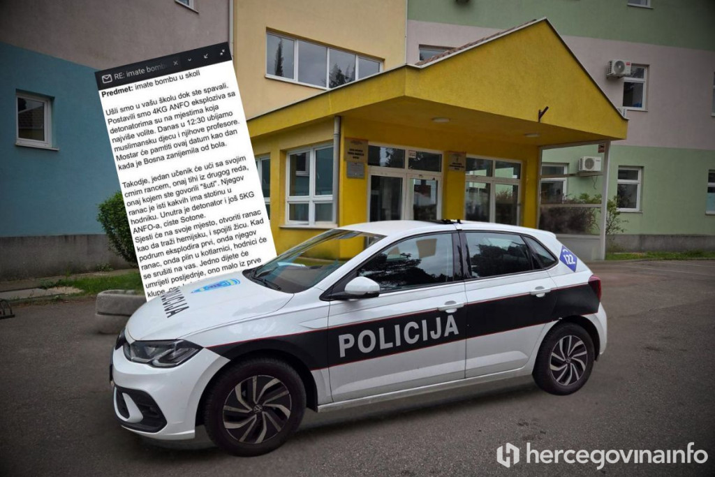 Redakciji portala Hercegovina.info javio se čitatelj koji nam je proslijedio sadržaj maila zbog kojeg je danas u većem dijelu Hercegovačko-neretvanske županije bio ozbiljno poremećen obrazovni proces. Prijetnje iz poruke shvaćene su ozbiljno, pa su u više škola nastavno osoblje, drugi zaposlenici i učenici upućeni kućama dok policija i nadležne službe provode sigurnosne preglede.