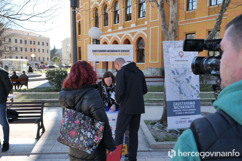 Neformalna grupa građana iza inicijative "Zaustavimo nezakonite izmjene Prostornog plana u Mostaru" organizirala je uličnu akciju i potpisivanje peticije za aktivno sudjelovanje građana u izradi prostornog plana grada Mostara i Hercegovačko-neretvanske županije.