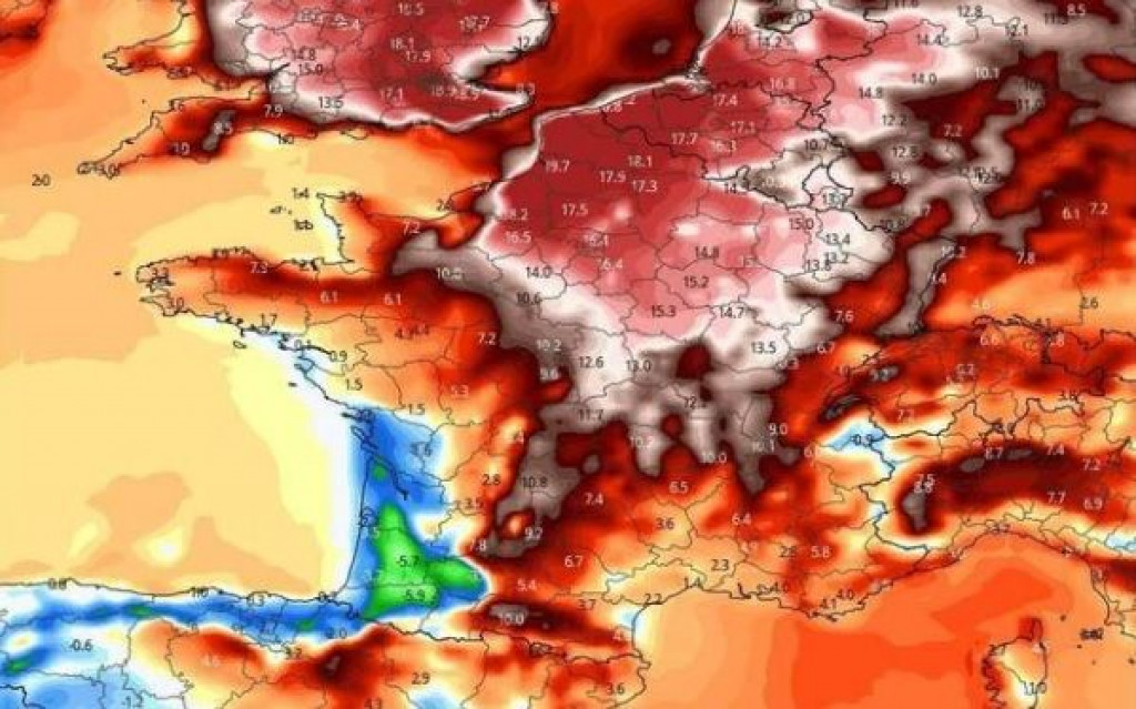 "Za sve one koje misle da meteorolozi pretjeruju s izraženim valom vrućine proteklih dana, evo zanimljive mape koja potvrđuje kako je ovo uistinu neuobičajena pojava. Temperaturno odstupanje nad zapadnom Europom danas je, ne računajući već rashlađeni jugozapadni dio Europe po prolasku visinske ciklone, za 10 do 20 °C više u odnosu na višegodišnju klimatsku normalu 1991-2020. Dobro pročitajte još jednom zadnju rečenicu i posebno zadnje četiri riječi iste, jer nije riječ ni o 1961-1990, niti o 1981-2010, već je, ako vam je bilo mrsko čitati, niz 1991-2020 - onaj u kojem bi odstupanja trebala biti najmanja", napisao je na facebooku Nedim Sladić uz gore objavljenu fotografiju.