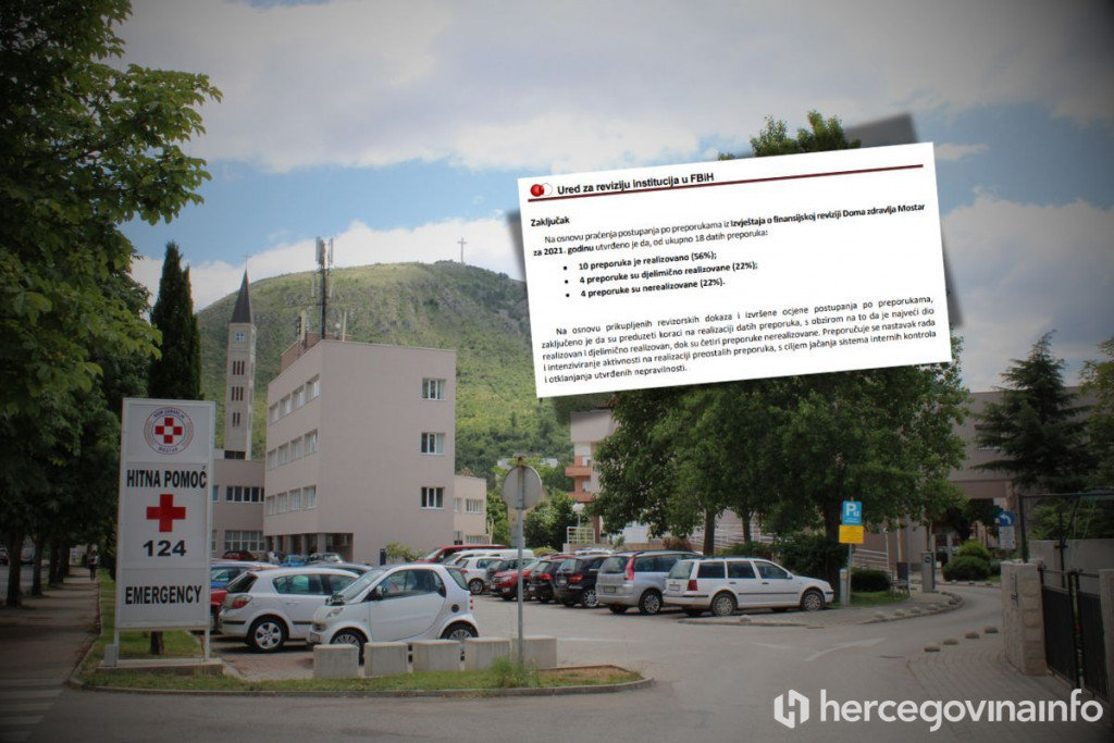 Dom zdravlja Mostar proveo je dio preporuka iz financijske revizije za 2021. godinu, no niz važnih pitanja i dalje ostaje neriješen – od plana integriteta i interne revizije do javnih nabava i usklađivanja kapitala.