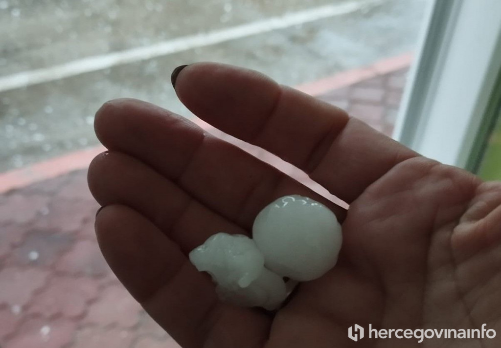 Kako se može vidjeti na fotografijama koje su stigle redakciji Hercegovina.info, u Neumu je zabilježena krupna tuča, pri čemu su pojedina zrna leda dosezala veličinu oraha.