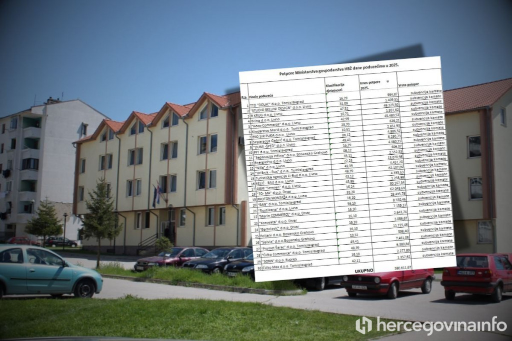 Popis svih korisnika potpora u 2025. godini objavljen je na službenim internetskim stranicama Vlade Hercegbosanske županije.