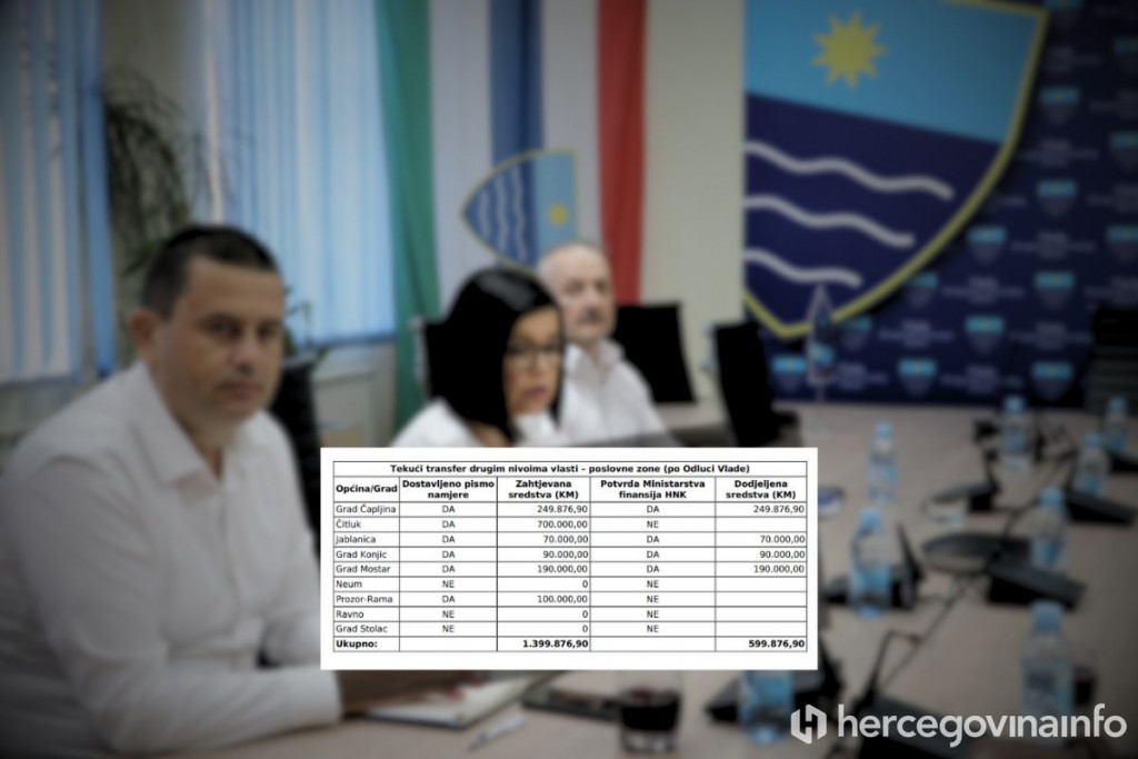 Vlada HNŽ podijelila oko milijun maraka gradovima i općinama, Čitluk i Rama odbijeni