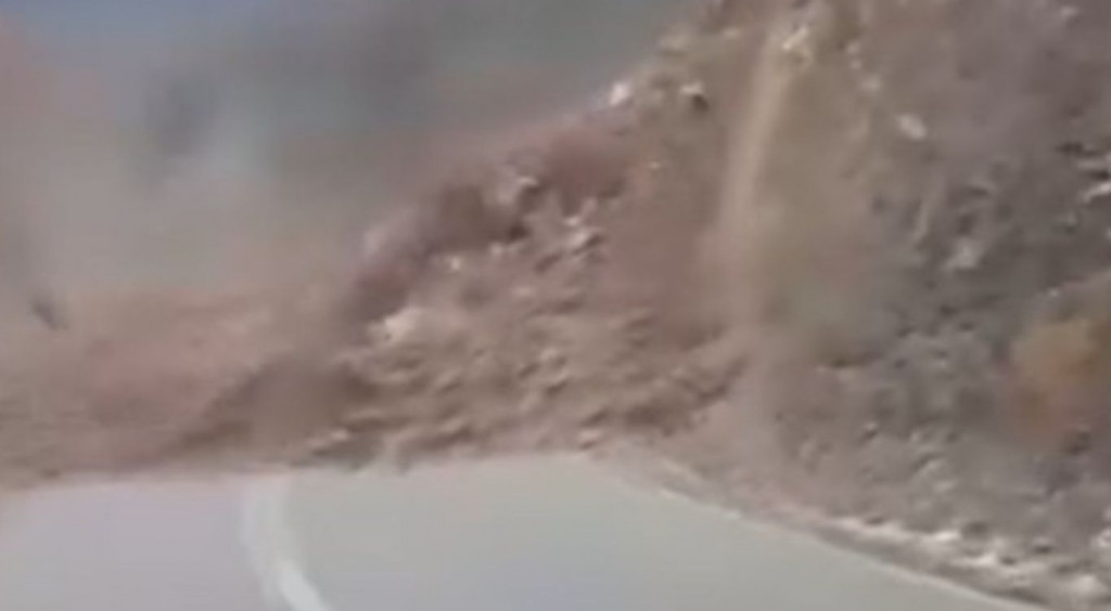 Vozač je u posljednjem trenutku uspio zaustaviti vozilo, dok je kamera zabilježila trenutak kada se golema količina zemlje i kamenja obrušila na kolnik, tik uz njegov automobil.
