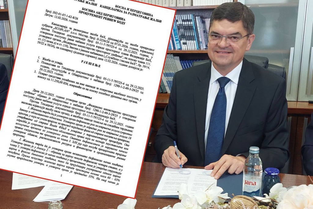 Ured za razmatranje žalbi Bosne i Hercegovine usvojio je žalbu mostarske firme Ecoplan d.o.o. i poništio natječaj Federalnog ministarstva prostornog uređenja za izradu Prostornog plana Federacije BiH.