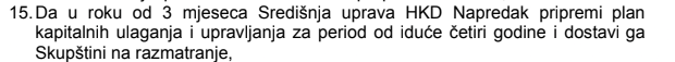 Skupština je Središnju upravu u listopadu 2023. zadužila da u roku od tri mjeseca izradi i dostavi plan kapitalnih ulaganja za razdoblje od četiri godine. Međutim, prema pouzdanim informacijama do kojih je došao naš portal – taj plan nikada nije izrađen niti predstavljen, čime je prekršena izravna obveza preuzeta odlukom najvišeg tijela Društva.