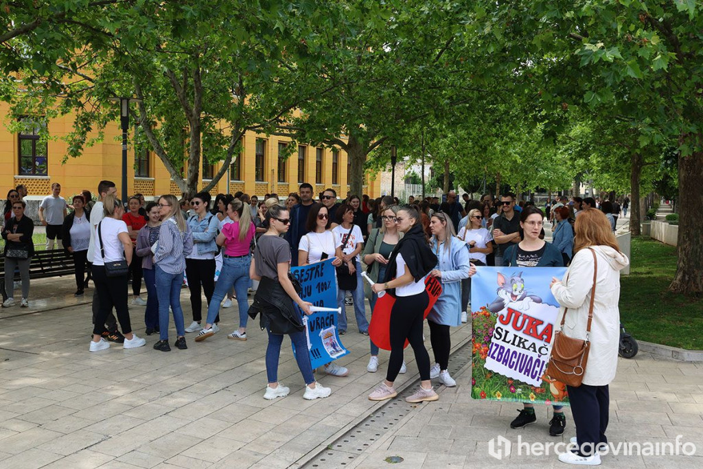 Okupljanje je započelo ispred zgrade Stare gimnazije, a kolona se potom uputila prema zgradi Vlade HNŽ-a gdje su zdravstveni djelatnici jasno izrazili svoje nezadovoljstvo.
