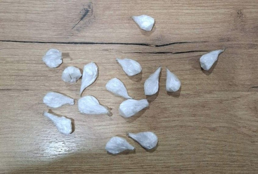 Tijekom postupanja, na upit policijskih službenika posjeduje li predmete ili tvari čije držanje nije dopušteno, A. K. je dobrovoljno predao 15 PVC vrećica s neutvrđenom količinom bijele praškaste tvari koja svojim izgledom upućuje na sumnju da je riječ o opojnoj drogi kokain.