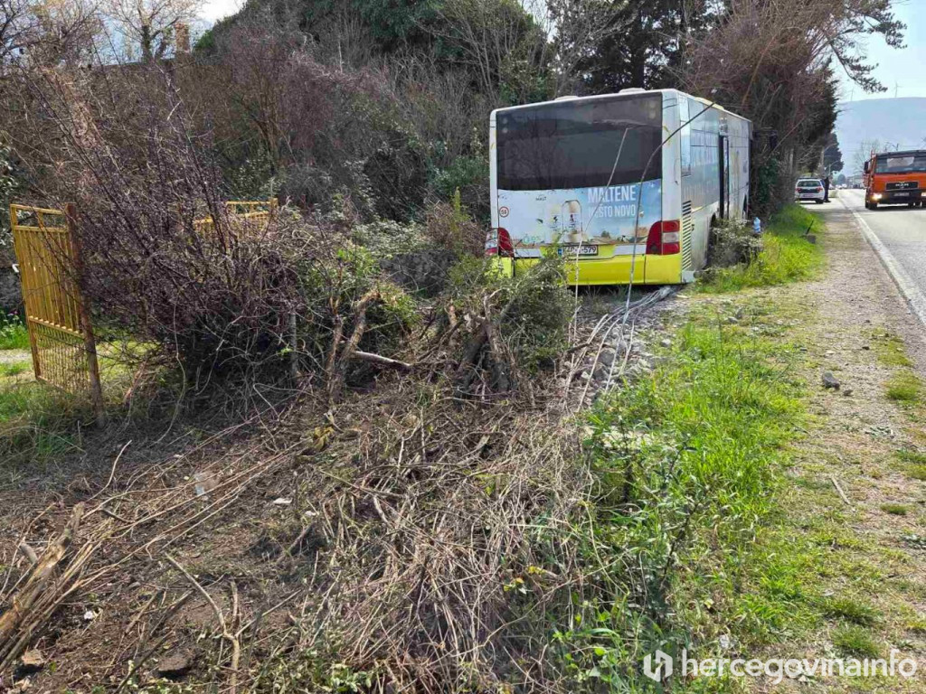 Tri osobe ozlijeđene su u slijetanju autobusa JP Mostar bus s ceste koje se danas oko 11:30 sati dogodilo u prigradskom naselju Bijelo Polje kod Mostara.