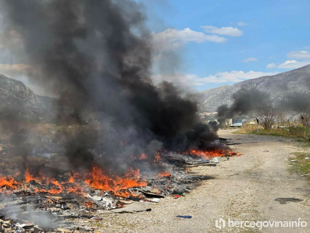 Gusti crni dim vidljiv je nad južnom industrijskom zonom Mostara, gdje je izbio požar na divljoj deponiji iznad mosta, i to na više lokacija.