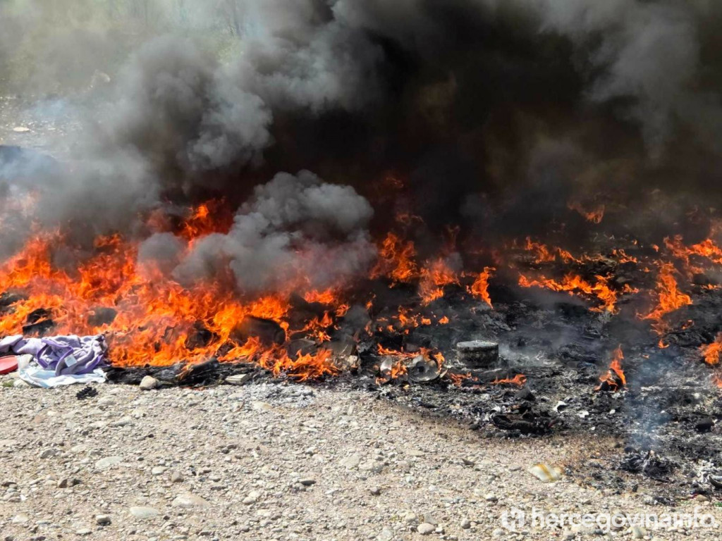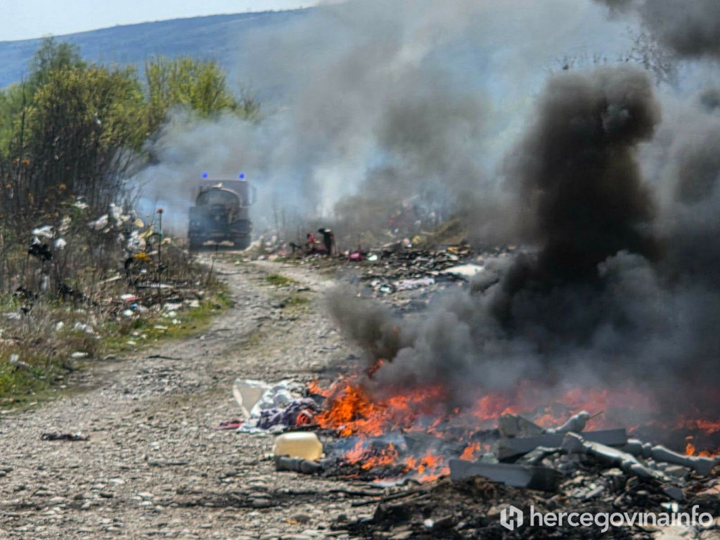 FOTO/VIDEO Crni dim južno od Mostara, gori divlja deponija, vatrogasci na terenu