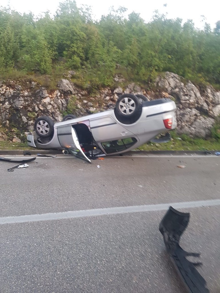 Kako doznajemo s lica mjesta sudionici nesreće su prošli s lakšim tjelesnim ozljedama. Uslijed udara jedan automobil se prevrnuo na krov.