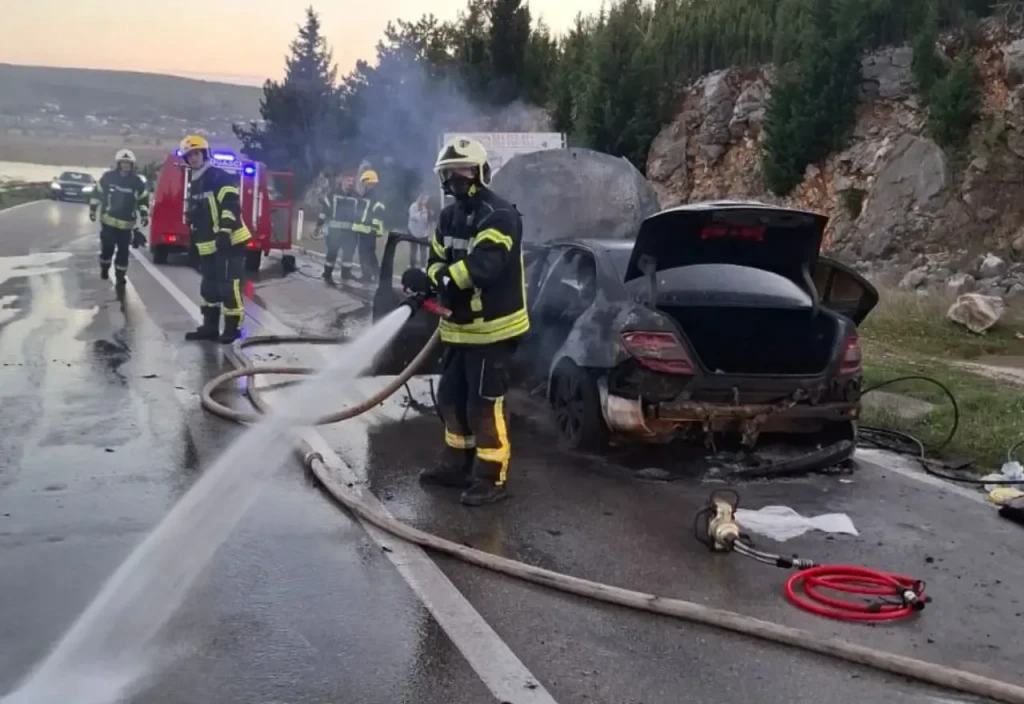 DIONICA MOSTAR - ŠIROKI BRIJEG Unatoč brzoj reakciji vatrogasaca, izgorio automobil 'Mercedes'