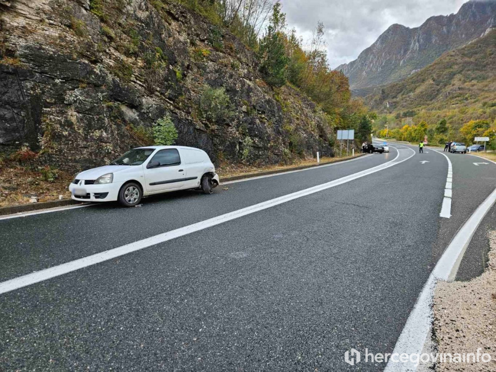 Na magistralnoj cesti Mostar - Jablanica, u mjestu Grabovica, danas poslijepodne dogodila se prometna nesreća u kojoj su sudjelovala dva osobna vozila, Renault i Mercedes.