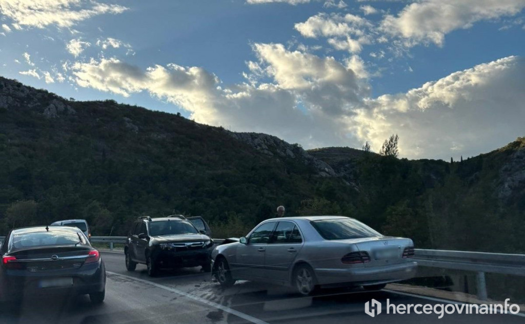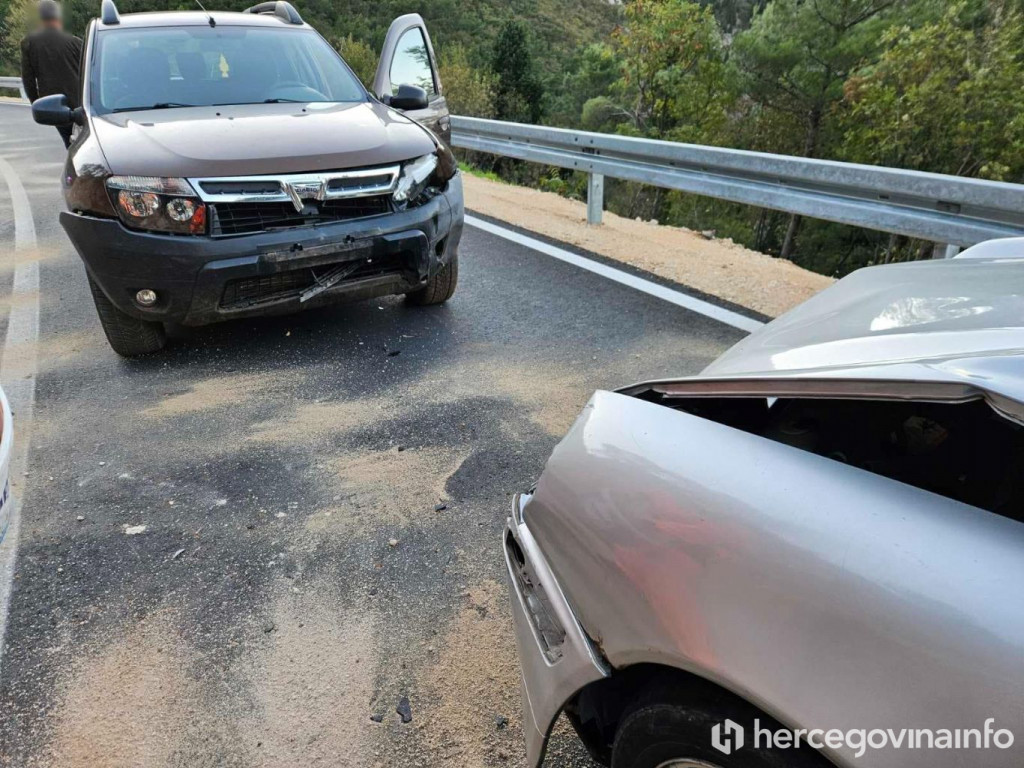 Oko 15:30 sati na cesti Mostar - Čitluk, na izlazu iz Mostara, dogodila se prometna nesreća u kojoj su sudjelovali osobni automobili marke Dacia i Mercedes.