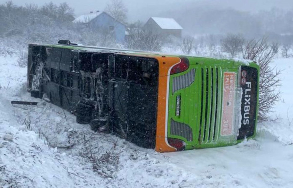 KLIZAVA CESTA U Hrvatskoj se prevrnuo još jedan autobus