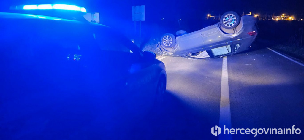 MOSTAR - ČITLUK Automobil se prevrnuo na krov, jedna osoba ozlijeđena