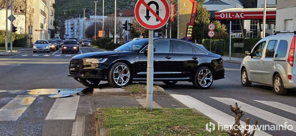 MOSTAR Dvije lakše prometne, Audi oštetio prometni znak