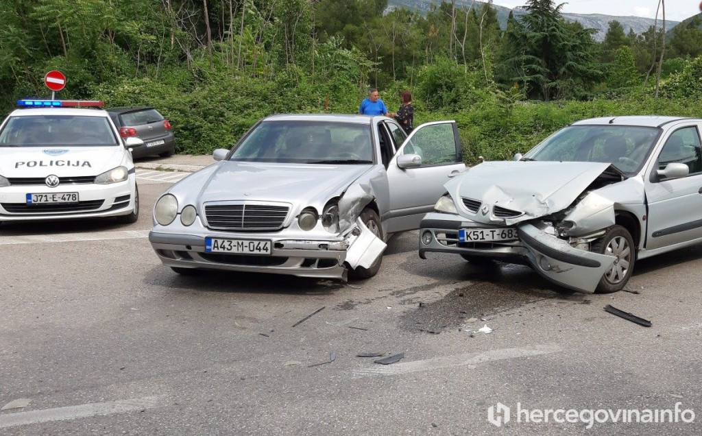 Oko 15 sati u Ulici P. Rizza u Mostaru došlo je do sudara dva osobna vozila dok ozlijeđenih nije bilo.