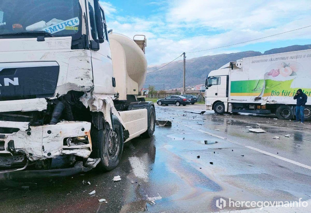 Danas oko 15:30 sati na magistralnoj cesti M-17, na južnom izlazu iz Mostara, dogodila se prometna nesreća u kojoj je ozlijeđena jedna osoba. Kako doznajemo u nesreći su sudjelovala dva teretna vozila (kamiona) Man, bh. registarskih oznaka.