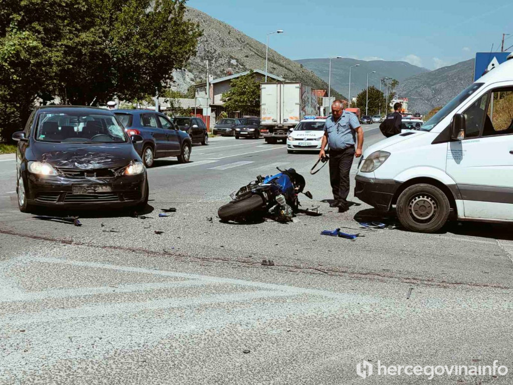 Ozljede neutvrđenog stupnja zadobio je motociklist kojem je liječnička pomoć ukazana u KB 'Dr. Safet Mujić'.