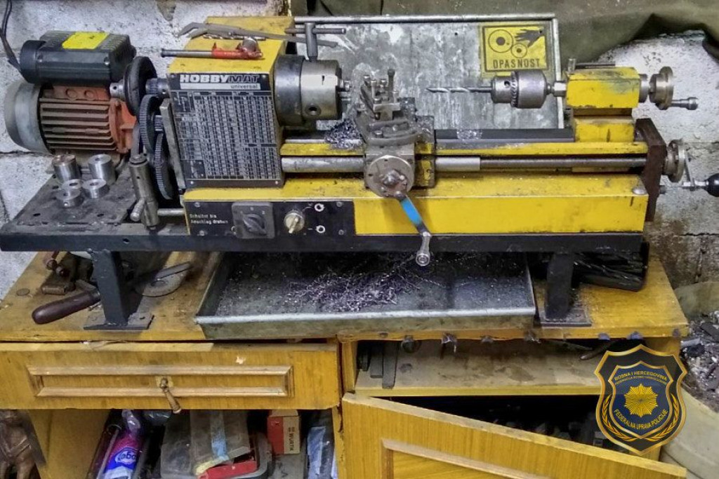 "U sklopu navedenih aktivnosti, a na osnovu Naredbe Općinskog Suda u Čapljini izvršen je pretres stambenih prostorija na području općine Stolac koje koristi osumnjičeni A.Š., kojom prilikom su pronađena i oduzeta tri gasna pištolja, dva bojeva pištolja, veća količina municije različitog kalibra, dijelovi od oružja (udarne igle, cijevi i dr.), stroj koji je korišten za mehaničku prepravku naoružanja, te drugi predmeti koji potiču ili se mogu dovesti u vezu sa predmetnim kaznenim djelom, a koji će biti korišteni kao dokaz u kaznenom postupku.