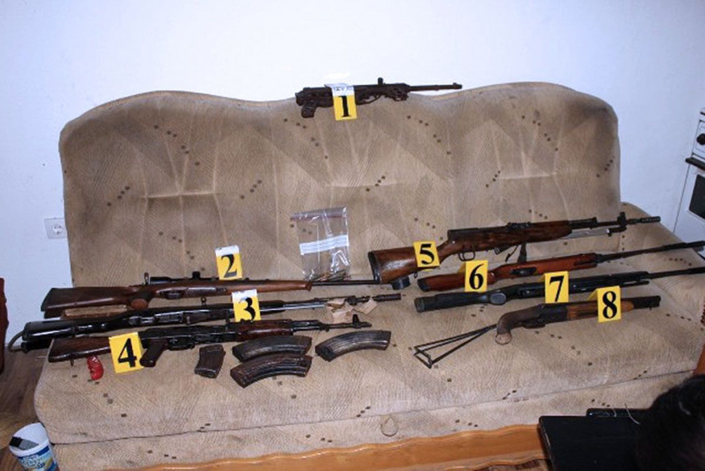 Prilikom navedenog pretresa pronađeno je sljedeće oružje i streljivo: karabin kalibra 7,9 mm, sa optikom marke 'Hawke'; poluautomatska puška - PAP, kalibra 7,62 mm – dva komada; automatska puška sa drvenim kundakom i četiri metalna okvira; skraćena lovačka puška sa dorađenim kundakom; zračna puška model B 3-3 kalibar 5,5 mm; zračna puška PVC kundak, marke 'Strikep'; streljivo kalibra 7,62 mm - 124 komada i kutija dijabola za zračnu pušku – dva komada.