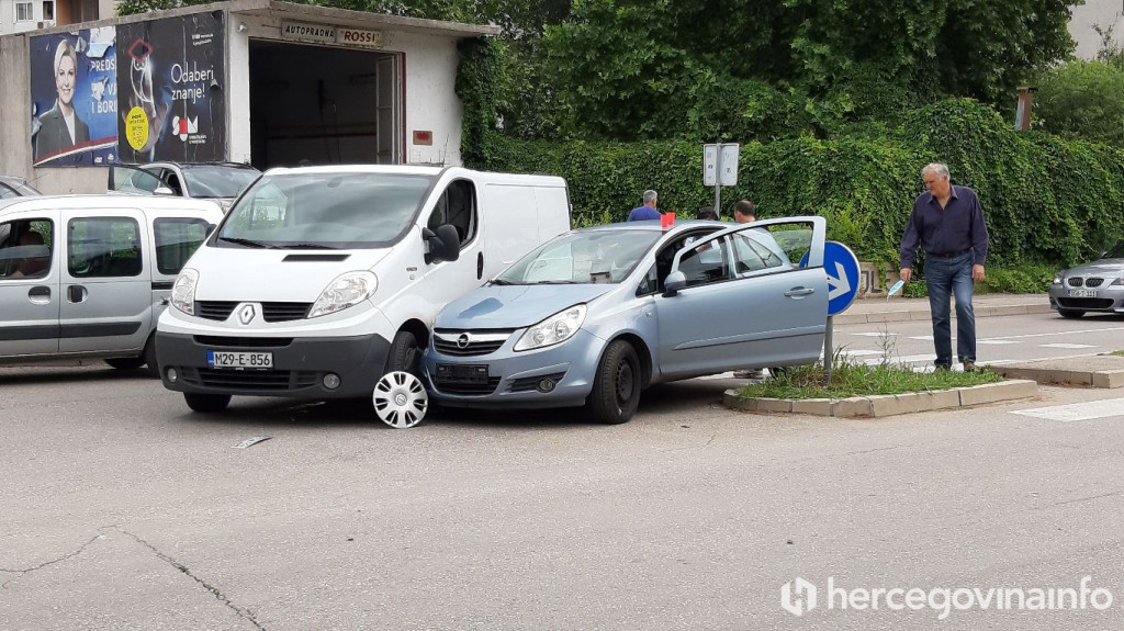 U prijepodnevnim satima u Dubrovčakoj ulici u Mostaru dogodila se prometna nezgoda u kojoj su sudjelovala dva vozila - teretno vozilo Renault i osobno vozilo Opel.