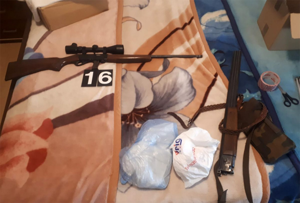 Prilikom pretresa pronađena je veća količina zeljaste biljne materije koja svojim izgledom i mirisom asocira na opojnu drogu tipa marihuana, veća količina oružja i streljiva različitog kalibra, kao i veći iznos novca, te je isto izuzeto na potvrdu o privremenom oduzimanju predmeta od navedenog D.P.
