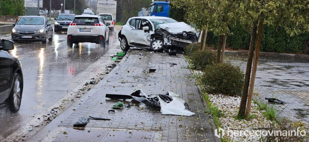 Nakon sudara oba vozila su završila izvan ceste, odnosno na nogostupu.
