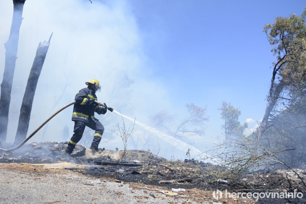 Na terenu su vatrogasci i lokalno stanovništvo, a na ispomoć pri gašenju požara stigli su i pripadnici PVP Čapljina sa jednim vozilom i tri vatrogasca kao i