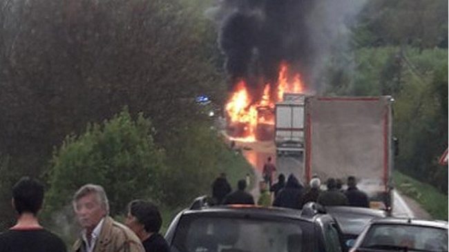 Autobus se nakon sudara zapalio i u potpunosti izgorio. Unutar njega nađena su tri izgorena tijela. Četvrti poginuli je vozač kamiona.
