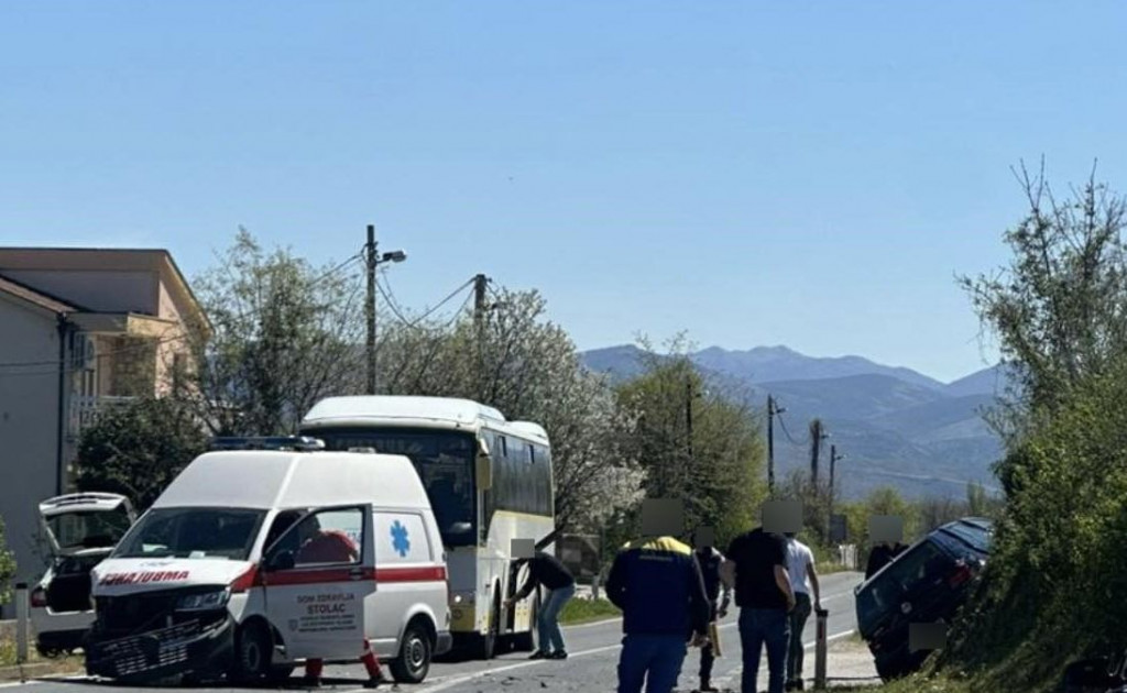 U mjestu Aladinići kod Stoca danas oko 13 sati dogodila se prometna nesreća u kojoj su sudjelovali vozilo hitne pomoći i osobni automobil.