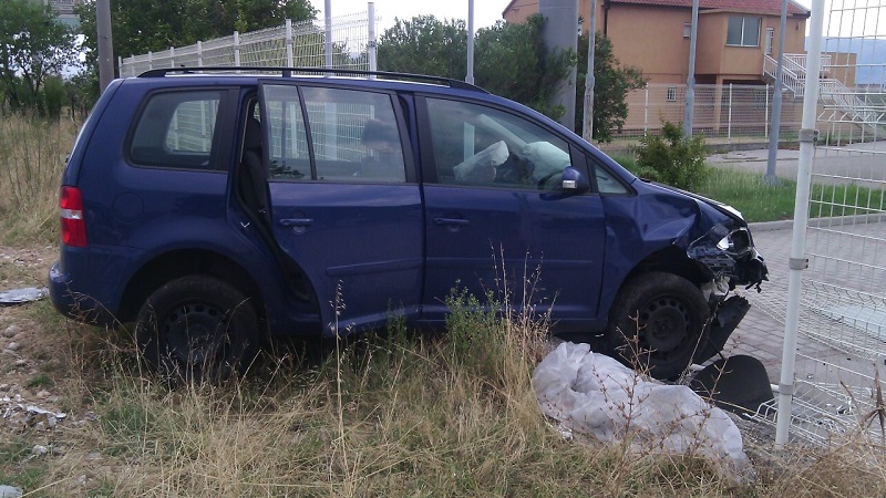 Prometna nesreća se dogodila na raskrižju, a od siline udarca VW vozilo je probilo zaštitnu ogradu poslovnog objekta Bauwelt.
