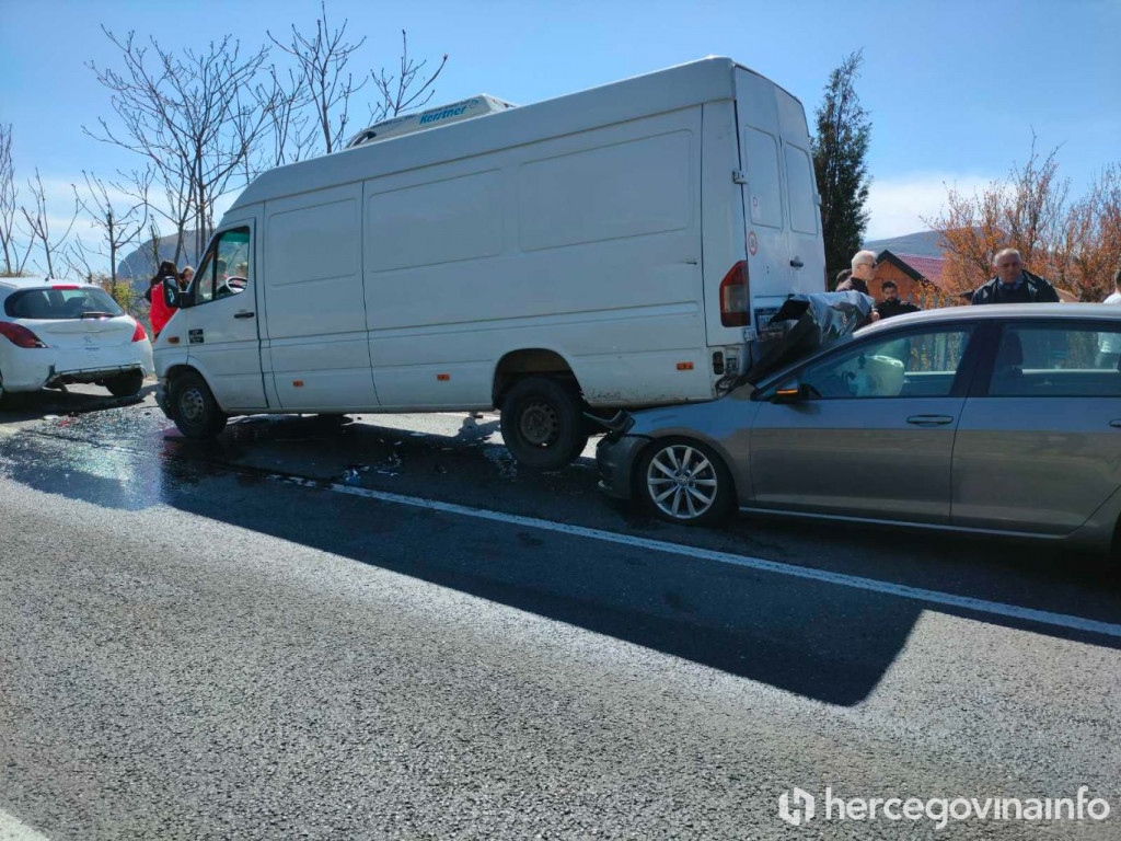 Na magistralnoj cesti M-17, iznad naselja Pasjak u Mostaru oko 13:30 sati došlo je do lančanog sudara četiri vozila, te su kako neslužbeno saznajemo dvije osobe ozlijeđene.