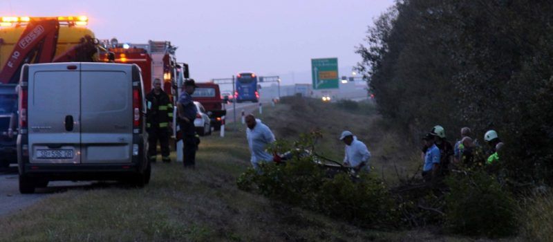 Nesreća se dogodila na sjevernom kolničkom traku kod Bukovlja, gdje je vozilo njemačkih registracija sletjelo s autoceste, probilo zaštitnu ogradu i zaustavilo u šumarku. Osobno vozilo njemačkih registracija je u potpunosti izgorjelo.