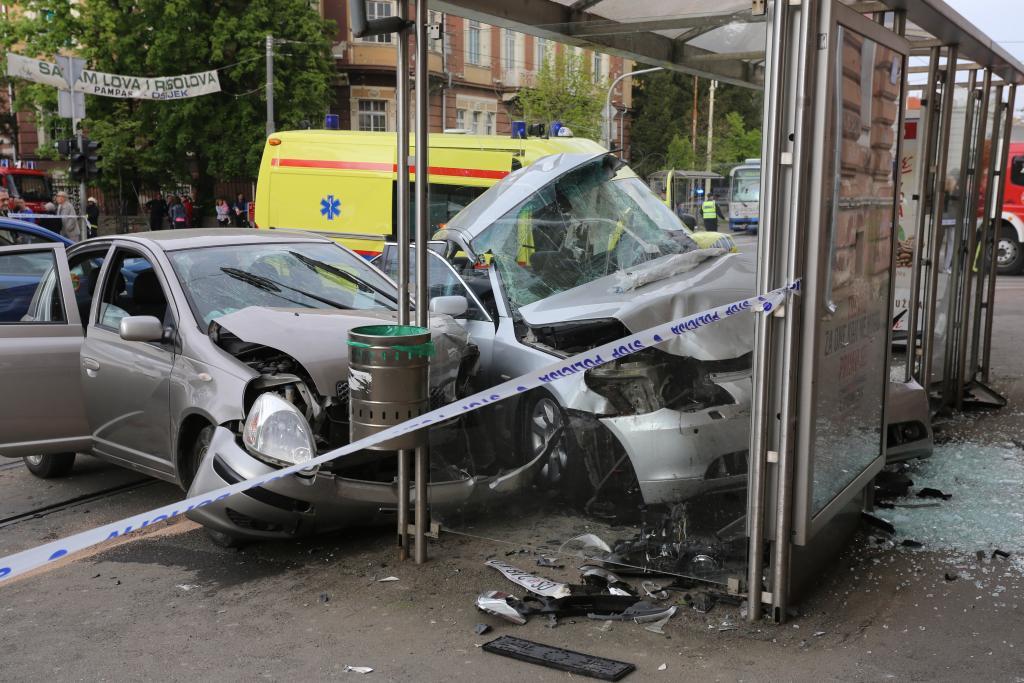 Hitna pomoć, koja je nakon 16 sati išla na hitnu intervenciju, sudarila se na raskrižju Europske avenije i Radićeve s BMW-om beogradskih registracija, a onda su od siline udarce stradala još četiri automobila koja su stajala na semaforu. Dio automobila koji je čekao na semaforu udario je u staklenu tramvajsku nadstrešnicu i probio stakleni zid.