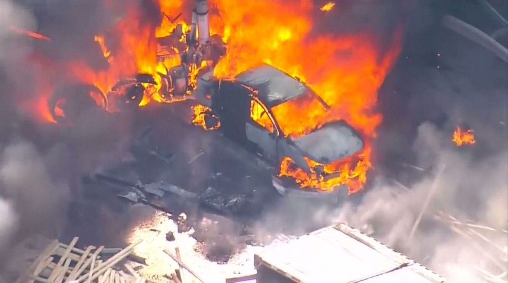 Na snimkama se vidi da drveni stupovi iz kamion nestaju u požaru poput čačkalica. Strahuje se da bi broj stradalih ljudi i djece mogao biti velik.