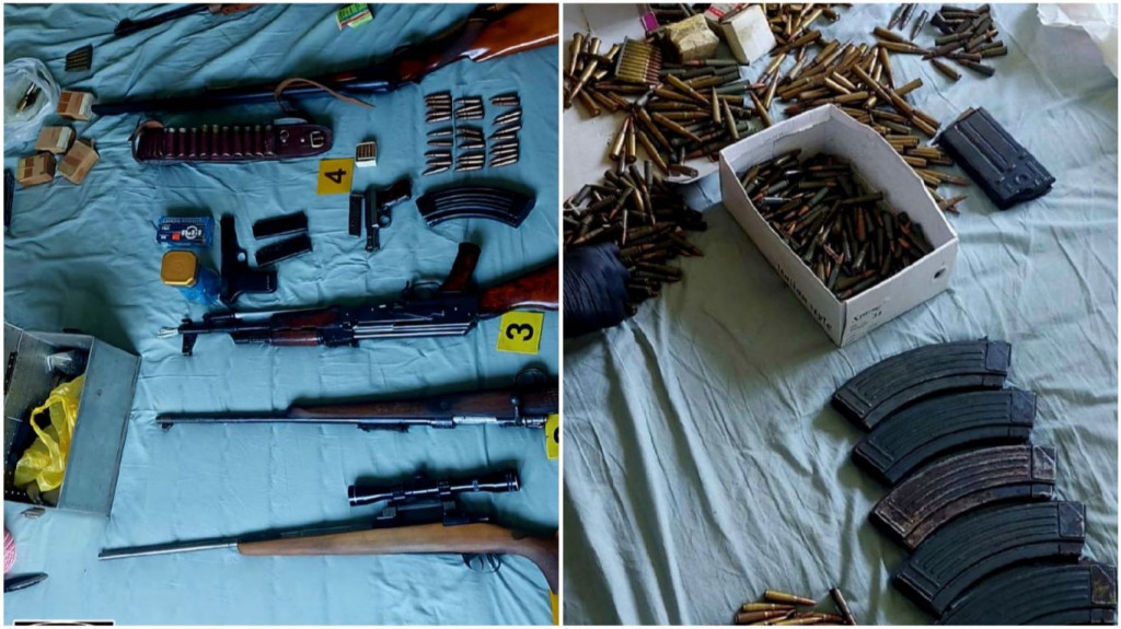 Prilikom pretresa pronađena je i uz potvrdu privremeno oduzeta puška s optikom 'Crvena zastava', puška 'M48A', automatska puška s pripadajućim spremnikom u kojem se nalazi streljivo kalibra 7,62 mm, pištolj marke 'Mauser' s pripadajućim spremnikom i kutija s 20 komada streljiva, 11 komada praznih spremnika za streljivo; streljivo različitih kalibara (672 kom. x 7,62 mm; 227 kom. x 7,9 mm; karabinsko streljivo 38 kom.; manevarsko streljivo 68 kom. x 5,56 mm; manevarsko streljivo 80 kom. x 7,62 mm; manevarsko streljivo 25 kom. nepoznatog kalibra).